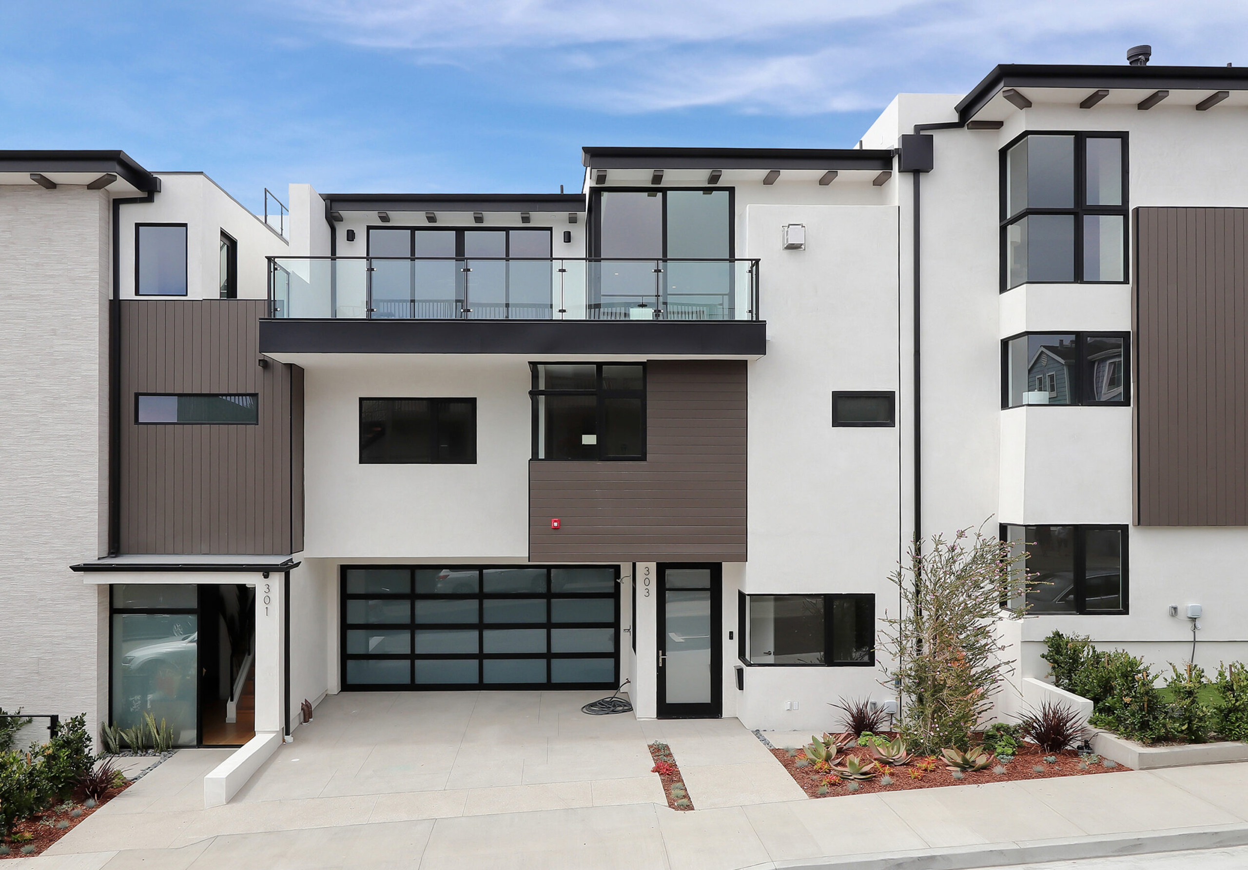 Coastal modern designed townhomes in prime beach area, ocean views and rooftop decks.