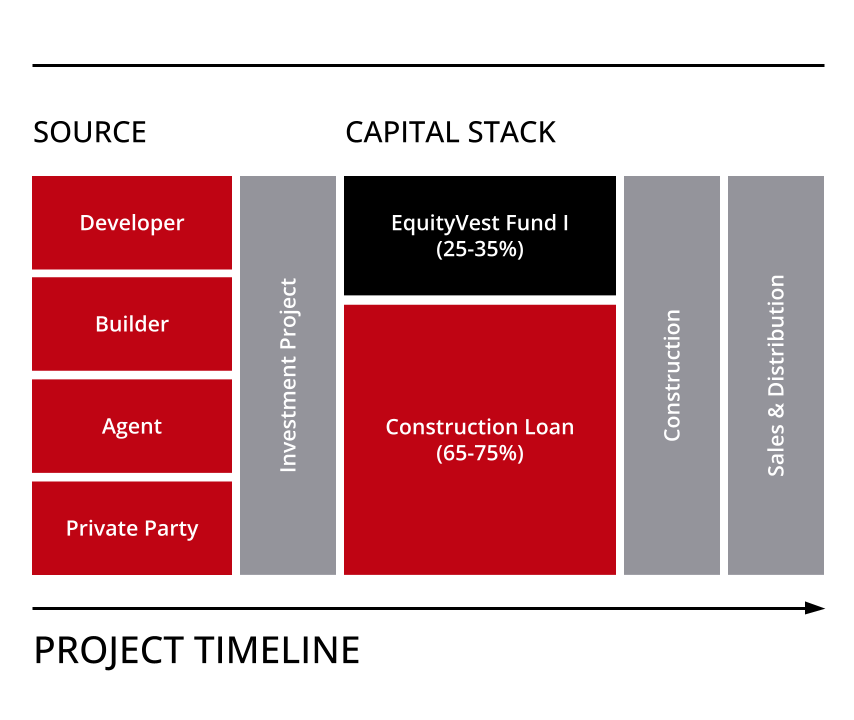 Equityvest provides equity funds as an investment in to the development project. The developer is responsible for obtaining the construction loan.